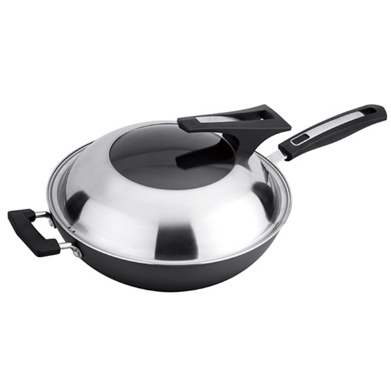 组合盖真不锈精铁炒锅